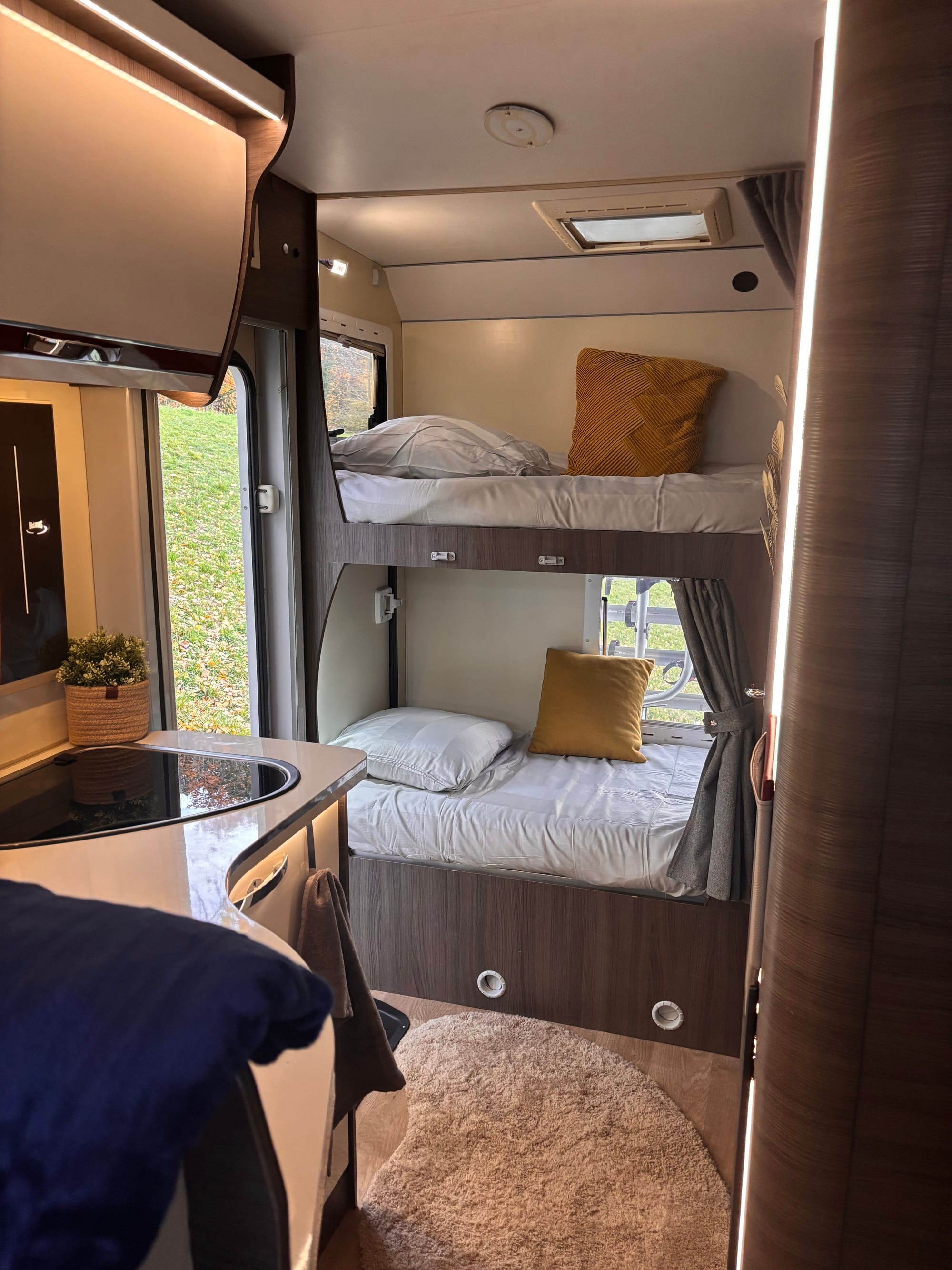 Nous mettons à votre disposition notre fourgon aménagé se nommant Enjoy pour vous faire découvrir de fabuleux moments ! Le véhicule est à chaque départ révisé et propre .Tous les conseils techniques vous seront transmis avant votre escapade ! Nous serons joignable à tout moment si besoin. Nous vous fournirons également un guide pour vos stationnement en CC. Vaisselles fournies pour 2 à 4 personnes .Table extérieure avec 4 chaises + grand store de 8m2. Enjoy ayant 4 places prévu sur la carte grise nous pouvons vous mettre à disposition une toile de tente ainsi que son matelas gonflable pour vous permettre de partir à 4 personnes. Sans oublier une douche extérieure.